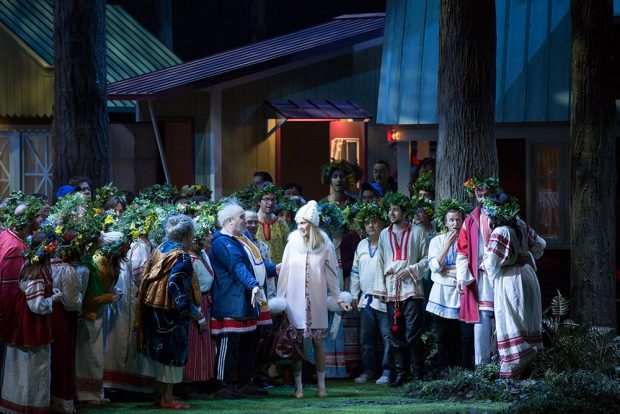 Presque quatre heures, lorsque l’on est pas Wagner cela peut paraitre long…Une mise en scène soignée 100 % russe, quelques ratés comme Lel, le chéri de ces dames transformé en Brice de Nice, La fille des Neiges, opéra préféré de Rimski-Korsakov se donne devant une salle comble à Bastille. Le plateau vocal est de qualité avec une Fleur de Neige parfaite en la personne de la soprano Aida Garifullina tout comme Lel chanté par le contre ténor Yutiv Mynenko tandis que l’on entend à peine le baryton basse Thomas Johannes Mayer dans le rôle du riche marchand Mizguir. Et c’est là où sans doute le bas blesse, le livret d’après Alexandre Ortrovski est en effet assez indigent, contant les amours contrariés d’une paysanne Koupava qui se voit rejetée face à la belle Fleur de neige, fille de Dame Printemps et de Père Gel. Reste toutefois l’occasion de voir avec de très beaux décors de Dimitri Tcherniakov la magnifique machine qu’est l’Opéra de Paris, à retrouver dans ses coulisses dans le formidable documentaire de Jean Stéphane Bron, L’Opéra, actuellement dans tous les bons cinémas.