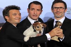 Si The Artist n’a pas fait le plein de trophées – trois sur six nominations – le film de Michel Hazanavicius est tout de même entré dans l’histoire des Golden Globes en remportant le trophée de la meilleure comédie. Jamais un film français n’avait décroché cette récompense, jamais un film français n’avait d’ailleurs concouru dans cette catégorie, classé habituellement dans celle des films de langue étrangère – c’est le film iranien Une Séparation qui vient de remporter le prix, après avoir reçu l’Ours d’or au Festival de Berlin. Le film muet a donc réussi à s’imposer devant Minuit à Paris de Woody Allen, Ma semaine avec Marilyn, l’autre chouchou de la presse américaine, Mes meilleures amies, grand succès de l’année, et 50/50. Depuis son lancement fin novembre – dans seulement quatre salles américaines! – The Artist a su conquérir critiques et public américains, récoltant en deux mois une moisson de récompenses. Toute l’équipe est venue sur scène recevoir le Golden Globe suprême, Jean Dujardin amusant encore l’assemblée en jouant avec Uggi, le Fox terrier du film. Le producteur français Thomas Langmann a pour sa part tenu à rendre hommage à son père Claude Berri, qui, en 1966, n’avait pas eu les moyens de venir à Hollywood chercher son Oscar du meilleur court-métrage.