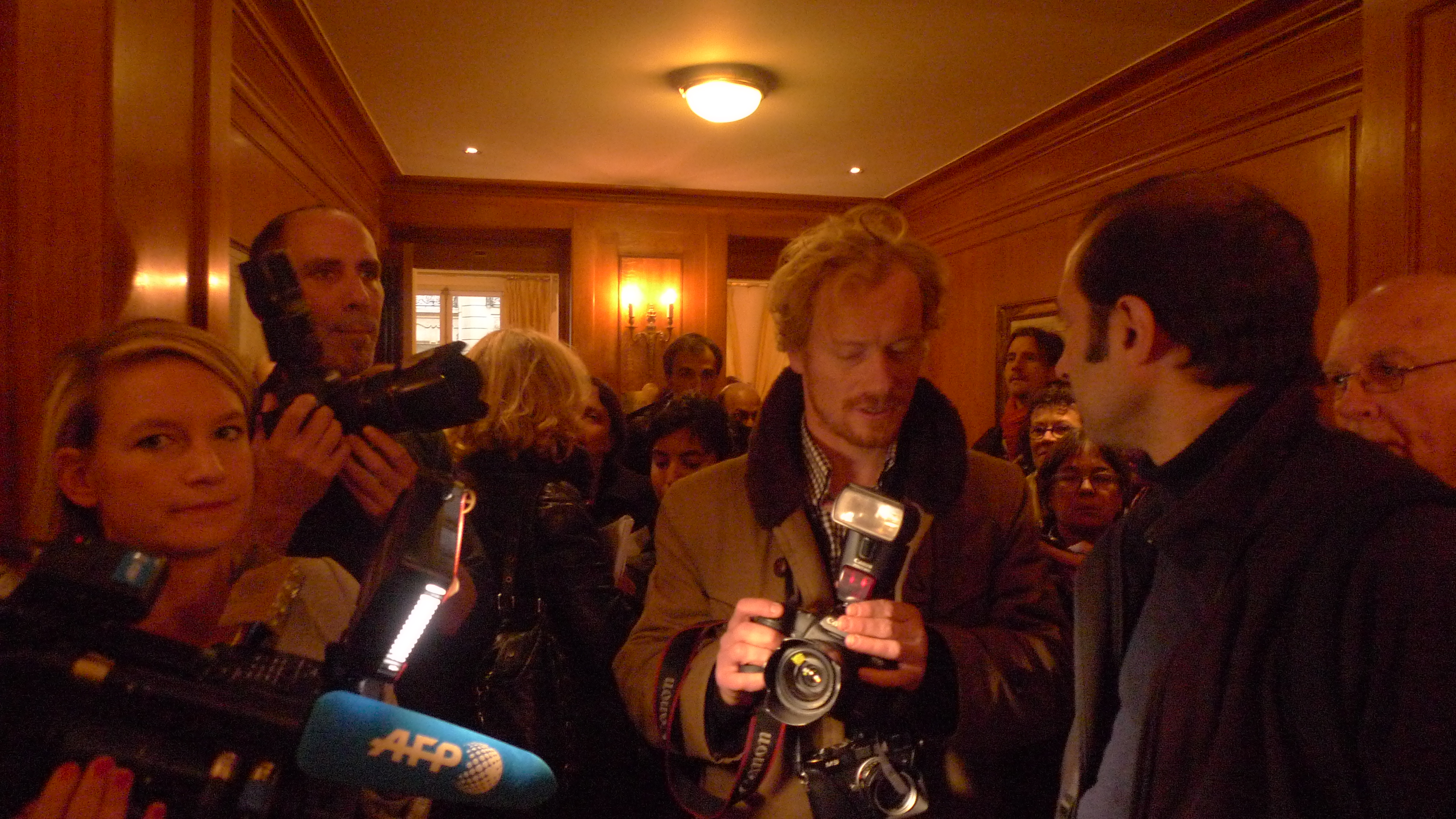 Honneur aux dames pour débuter cette folle semaine des prix littéraires. Ce lundi, le Femina crée en 1904 et son jury, composé exclusivement de femmes a ouvert le bal avec Patrick Deville- une nouvelle fois récompensé, avec à la clé 150 000 exemplaires en moyenne assurés! Après le prix Fnac en septembre (voir article), l’auteur de Peste et Choléra, qui est de toutes les listes des prix, Médicis, Renaudot et Goncourt, s’est vu à l’unanimité remettre ce prix féminin dans un univers bien masculin ( seulement quatre femmes ont eu le Goncourt en trente ans!) à l’Hôtel Crillon où se pressait une foule de caméras et journalistes. Certains, vieux briscards se refilant des « tuyaux », d’autres, novices comme cette cameraman scrutant son Iphone avec les photos des auteurs afin de pouvoir les reconnaitre et demandant si l’un d’eux était arrivé…ce qui aurait signifié qu’en le voyant, tout le monde aurait su que c’est lui qui l’avait! Sourires entendus des habitués…Un prix littéraire, ce n’est en effet pas les Césars avec la présence de tous les nommés; seuls le gagnant est invité! L’occasion pour lui de poser avec son livre, sans même un verre tout comme l’ensemble des journalistes, condamnés à voir passer les plats de ces dames-mi-cuit de foie gras, turbot poché et mille feuille vanille bourbon, avec à chaque fois que la porte s’ouvre, les caméras se levant ainsi que les appareils photos en demandant si « elles ont fini… ».