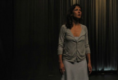 En une phrase, tout est dit : « La difficulté est bien sûr que je vis dans un vide que je remplis de mes rêves et de mes fantasmes ». Sophie Marceau prête ses traits, son corps, sa voix à Viktoria dans Une histoire d’âme, d’Ingmar Bergman, jusqu’au 19 novembre au Théâtre du Rond Point. Cette pièce, ou plutôt ce scénario datant de 1972, le cinéaste ne l’a jamais tourné. Il en a en revanche cédé les droits à Bénédicte Acolas – dont c’est la première mise en scène – en 2006. Pour incarner Viktoria, héroïne bergmanienne par excellence, Bénédicte Acolas a voulu Sophie Marceau. Elle qui avait ce projet chevillé au corps depuis des années a souhaité cette actrice là plus que tout. Et le spectacle est aussi l’histoire de cette rencontre entre les deux femmes. Car Marceau se fait rare au théâtre. Elle attendait LE projet qui la ferait vibrer pour regagner les planches. Elle l’a trouvé. Seule sur la petite scène de la salle Jean Tardieu, elle se tient là, si près. Sous le nez du spectateur. Viktoria, est une femme fêlée, au bord de la crise de nerfs. Et même au delà. Trop belle, trop intelligente, trop lucide sans doute, sa fantaisie bute soudainement sur l’organisation de son monde fait de conventions. Si bien qu’elle ne sait plus à quoi se raccrocher. Sur scène, Sophie monologue, à l’image de Viktoria qui – peut-être folle – soliloque. Elle s’entretient avec ce mari infidèle, se confie à sa femme de chambre et à Richard Strauss. Dans les interstices de cette logorrhée, parfois étouffante tant Viktoria digresse, Sophie Marceau suffoque, étouffe, pleure beaucoup. Dans cette petite robe de satin, elle est sublime de sensualité. Ce pourrait être une robe de soirée comme une chemise de nuit. A l’image de ce personnage qui oscille entre songe et réalité. Tout y est : une lumière délicate, une scénographie qui ne cherche pas à souligner le discours déjà très dense. Une actrice puissante qui s’est véritablement approprié le texte qu’elle scande avec intelligence, changeant de tons et de registres avec finesse, rompant la rythmique de façon surprenante. Et pourtant, quelque chose ne fonctionne pas. A la réflexion, l’explication tient peut-être à l’image que l’on a de Sophie Marceau et dont on peine à se détacher. Elle demeure, malgré ses efforts, la Vic de La Boum, et la maman cool de Lol. Et cette dimension un peu lisse qui lui colle à la peau ne coïncide pas avec la complexité bergmanienne. C’est cruel, mais c’est ainsi.