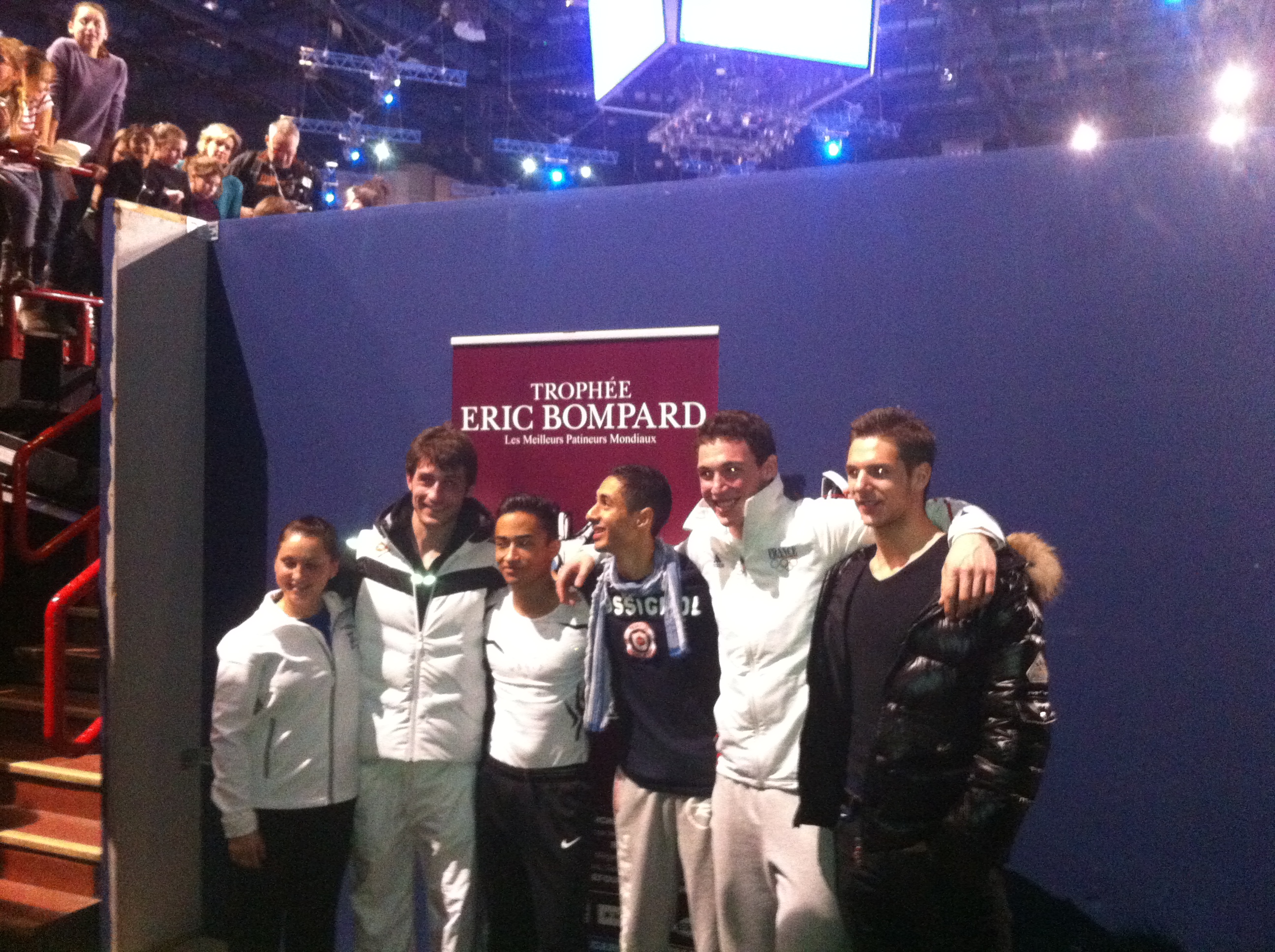 Double Axel, triple boucle, programme libre, court, le gratin du patinage artistique s’est retrouvé ce weekend au Palais Omnisports de Paris Bercy pour la 9ème édition du Trophée Eric Bompard, vous savez les pulls en cashmere… Samedi, 13h00, sortie de métro Bercy, l’ambiance est déjà au rendez vous devant l’entrée principale du Palais Omnisports. Se mélangent devant l’enceinte l’Anglais, le Russe, l’Italien, l’Espagnol et le Français avec des drapeaux qui s’agitent au rythme des différents chants. Retransmis sur France 3 avec ce cher Nelson Montfort et annoncé par des panneaux dans tout Paris, le public est au rendez vous.