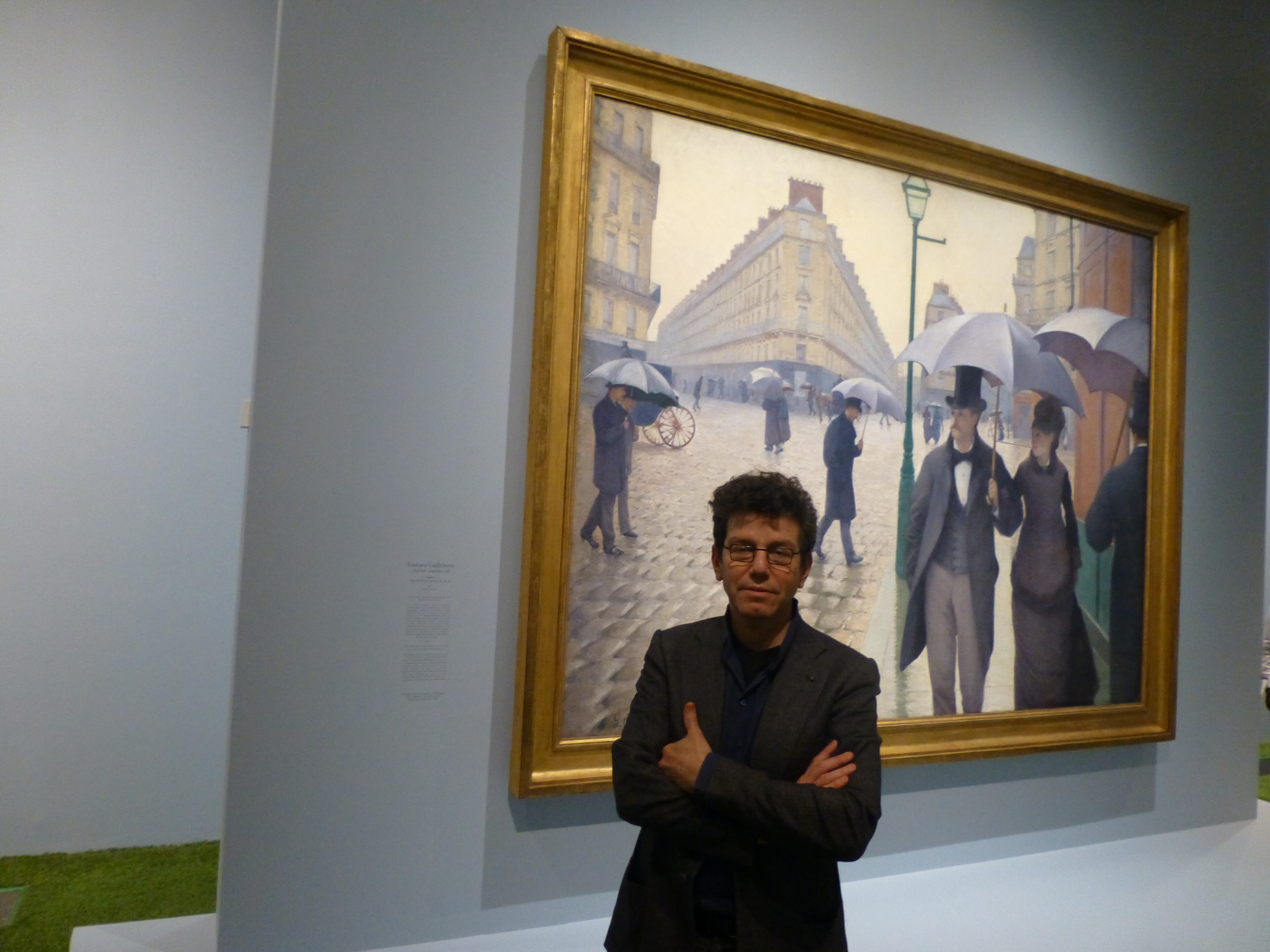 Robert Carsen devant son tableau préféré dans lequel il se fond comme une évidence…Gustave Caillebotte , Rue de Paris, jour de Pluie, de circonstance vu le temps,  ce lundi-là