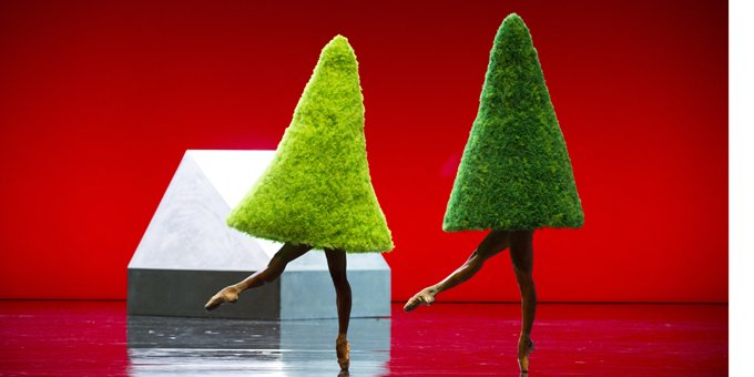 La musique devient incantatoire avec les voix du corps Accentus qui s’élèvent dans la Messe en mi mineur de Bruckner superbement dirigée par Laurence Equilbey tandis que sur la scène un jardin imaginaire prend vie à la manière d’un conte. Le créateur de mode Walter Van Beirendonck a imaginé des sapins de tulles, des guêpes géantes et des justaucorps à lacets gommant toute masculinité/féminité afin qu’il n’y ait plus que des corps qui dansent ou glissent comme dans ce passage inspiré où les danseurs s’élancent dans des lignes droites sur pointes aussi réjouissantes qu’éblouissantes de maitrise dans un décor au graphisme parfait.