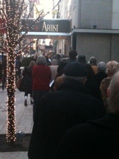C’est vendredi 25 novembre qu’est sorti “The Artist” sur les écrans américains. Une date pas super « bankable » pour lancer un film: c’était en effet Black Friday, journée de soldes monstres aux États-Unis, autant dire un pic de consommation dans tout le pays. Dès le petit matin, les rues de New York étaient noires de monde, il y avait la queue partout. Devant les magasins- pas devant les cinémas. Donc choisir ce lendemain de Thanksgiving paraissait bien étrange, voire risqué pour le distributeur américain Weinstein Compagny. Black Friday qui devient black-and-white Friday? Une invitation en tous cas pour laisser souffler sa carte bancaire et se laisser gagner par la poésie du film de Michel Hazanavicius. Cent vingt personnes ont répondu à l’invitation dès 10h30, au célèbre Paris Theatre- cinéma new-yorkais spécialisé dans les films français comme son nom l’indique- sur la 58e rue, au pied de Central Park. Son manager, Scott Lander, semble aux anges. “Jamais vu autant de monde pour la première séance de la journée!” s’exclame-t’il. Dans la file d’attente, Sylvia, petite dame aux yeux de chat, qui vient de fêter ses 90 ans-génération du muet–commente “Mon père m’a emmené voir mon premier film au Radio City Hall en 1929. Le cinéma était alors un endroit très élégant et le ticket coûtait 99 cents”. Sylvia s’est assise au centre de la salle sombre. Elle voulait être bien placée pour découvrir l’histoire sans parole de George Valentin, star du muet qui n’a pas voulu prendre le tournant du parlant-magistralement interprété par Jean Dujardin. Sylvia sort, enchantée. “L’esprit du muet est là, c’est incroyable!”. “Il méritait son prix d’interprétation à Cannes, et il méritera l’oscar du meilleur acteur”, ajoute de son côté Debbie, cinéphile de l’Upper East Side. Jean Dujardin avouait, il y a dix jours dans le New York Times, être soulagé de ne pas être connu aux États-Unis car les spectateurs pouvaient ainsi le juger sur sa seule performance. Il ne soupçonnait pas l’effet de surprise que son interprétation pouvait produire sur ceux, qui, comme moi, ont quitté la France à l’époque d’ »Un Gars, une Fille”. Quel parcours depuis! À la sortie du cinéma, tous semblent conquis par le talent de l’acteur et l’audace du réalisateur. Pour les plus jeunes, le charme semble avoir aussi agi. “Mon fils de 15 ans a découvert la force des silences pour exprimer les sentiments”, explique Peter, de Brooklyn. Un autre adolescent sort de la salle en pianotant sur son Iphone. “Les premiers tweets, on les trouve dans les films muets!” lance-t’il, pas mécontent de sa trouvaille. Les intertitres… 140 caractères, pas plus. Pourquoi pas…