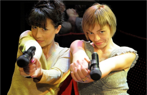 Bien sûr, passer après Anouilh n’a jamais été évident…Et après l’Alouette (voir article), tout parait bien fade, en « deça » dirait-on. Leonore Chaix et Flor Lurienne ne déméritent pourtant pas dans ce spectacle fort applaudi au Studio des Champs Elysées. Déshabillez mot, c’est l’idée de deux femmes qui donneraient la parole aux mots; alors évidemment pas tous, mais grâce à elle la « légèreté » qui ouvre le bal ou la « pusillanimité » auront enfin leur mot à dire. Pour la première, le comble de la misère serait une jupe mal coupée tandis que la seconde manque tant d’audace qu’elle est en voie de disparition. Qui connait en effet encore la définitition de ce mot ô combien difficile à prononcer? L »amertume » a, pour sa part, eu trois fées penchées sur son berceau, la désillusion, la mélancolie et la nostalgie. Les demoiselles tantôt chaloupent sur scène, viennent vous embrasser quand il s’agit du « baiser » et jouent avec leurs micros, avec bientôt l’impression que cela tourne un peu court et que le spectacle à force de « légèreté » peut laisser une certaine « amertume » de ne pas avoir séléctionné un moment de théâtre un peu plus fort. Alors de temps à autre on se demande si ce que l’on regarde est « ennuyeux » ou « ennuyant »…